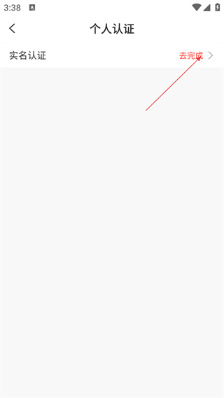 3、在【巴乐兔】个人认证界面,点击实名认证后的【去完成】,可进入实名认证流程,完善个人身份信息。