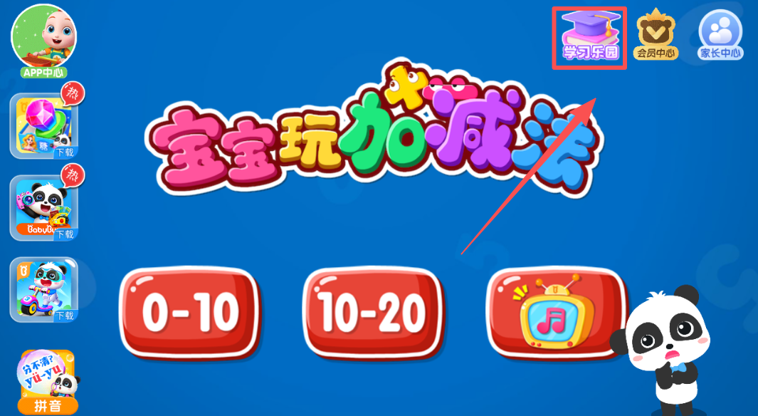 1、点击学习乐园,可进入学习必备好帮手页面,查看宝宝巴士汉字、英语等多款学习应用。