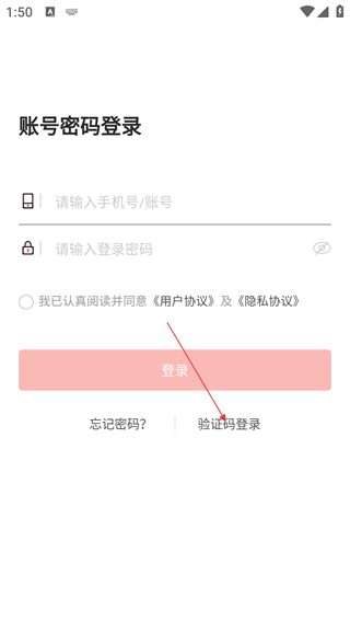 3、在登录页面点击【验证码登录】选项,切换至手机验证码登录模式。