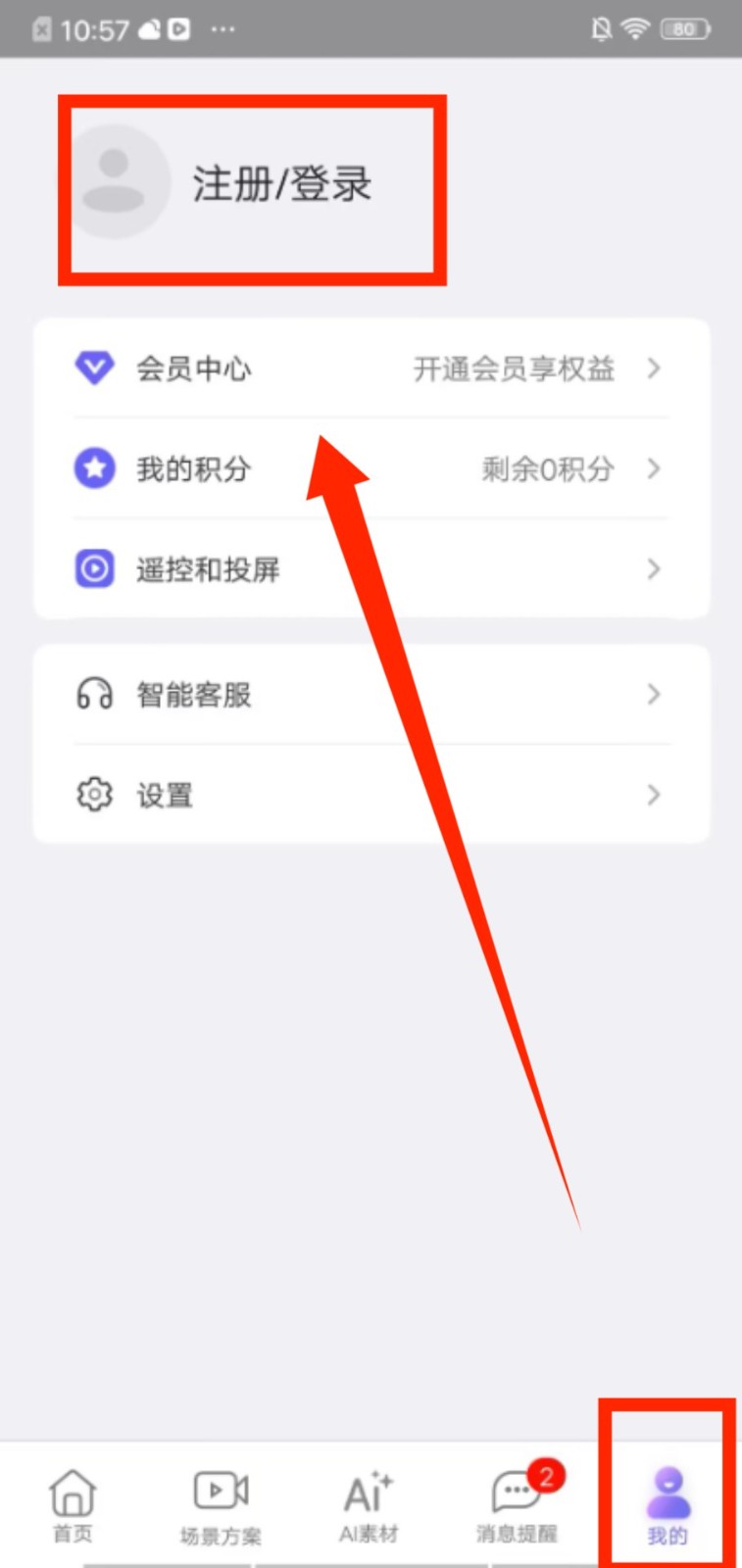 4、点击 “我的” 进入个人页面,完成注册 / 登录后,可查看积分、会员权益,管理个人相关设置。