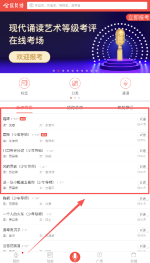 1、首先下载安装全民K诗,创建账户并完成登录,进入主界面后可浏览大量古典诗词,随时找到感兴趣的作品。