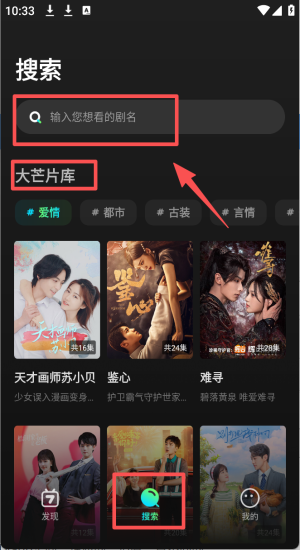 3、在搜索页面输入想要观看的剧名,查找特定视频。