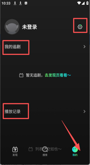 4、在“我的”页面中查看“我的追剧”和“播放记录”。