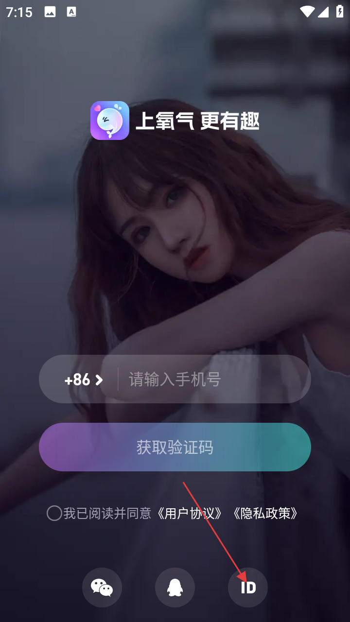 2、进入登录相关页面,点击氧气ID登录,进入ID登录界面。