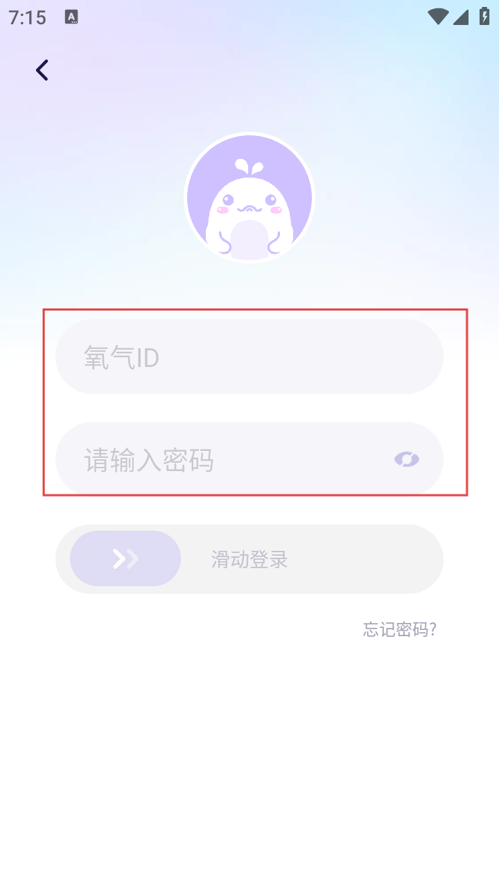 4、在氧气ID登录页面,输入好氧气ID和密码后,滑动【滑动登录】按钮,完成登录操作。