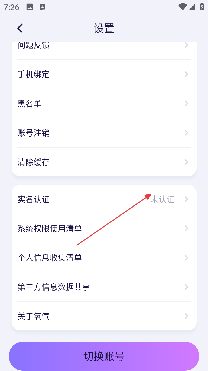 3、在设置页面,若要进行实名认证,点击【实名认证-未认证】,进入实名认证页面。