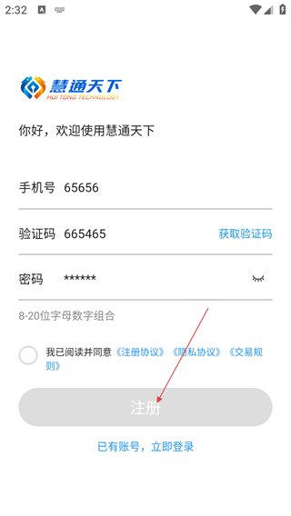 4、勾选《注册协议》《隐私协议》《交易规则》后,点击【注册】完成账号注册流程。