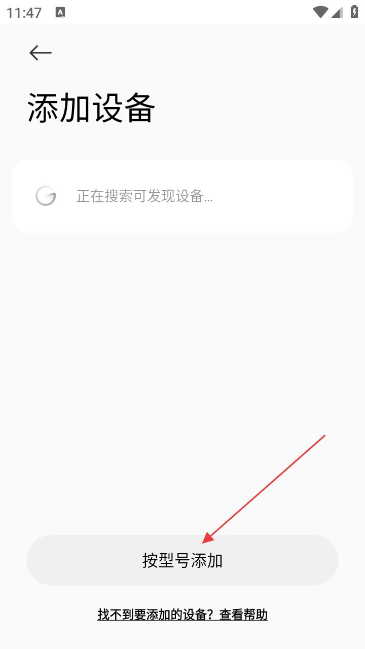 3、在添加设备界面,若搜索不到设备,可点击【按型号添加】按钮,手动选择设备型号进行添加。