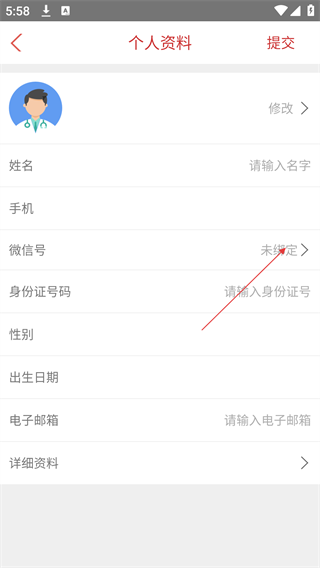 4、在个人资料页面,点击【微信号】后的“未绑定”选项,可按流程完成微信号与当前账号的绑定操作。