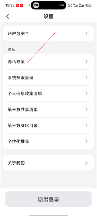 3、在设置页,点击【账户与安全】选项,进入账户安全管理页面。