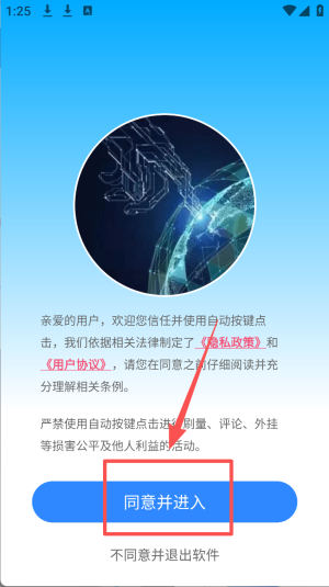 1、点击“同意并进入”按钮,接受用户协议并开始使用软件。