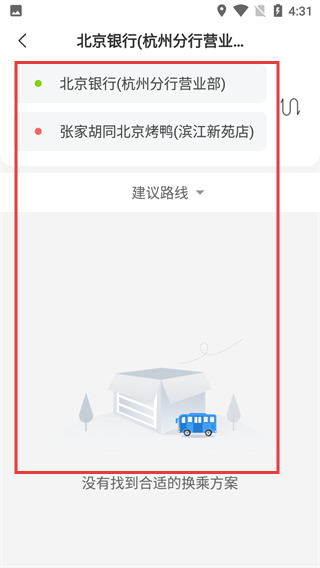 3、系统将自动检索并加载路线方案,若暂未找到方案会显示“没有找到合适的换乘方案”,待加载完成后呈现可选路线。
