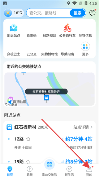 3.站点搜索:可搜索附近的公交站点,显示途经该站点的所有公交线路。