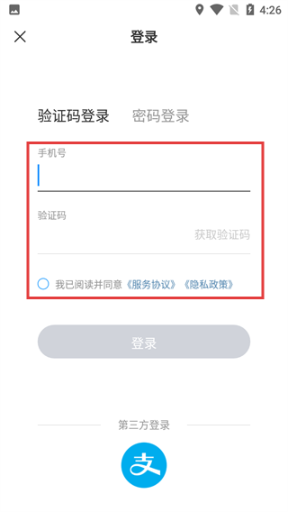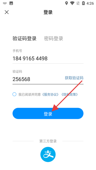 4、勾选“我已阅读并同意《服务协议》《隐私政策》”选项,点击【登录】按钮,完成账号登录操作。