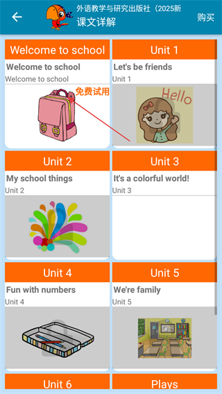 3、在单元列表中,选择目标单元(如“Welcome to school”),进入该单元的课文内容页面。