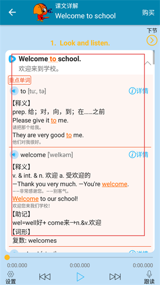 1.互动点读:通过点击屏幕上的文字,听到标准的发音和解释。