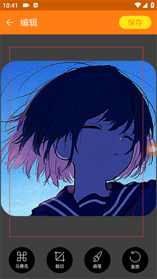 4、进入图片编辑页面后,可通过【马赛克】【裁切】等工具编辑图片,完成后点击【保存】导出编辑结果。