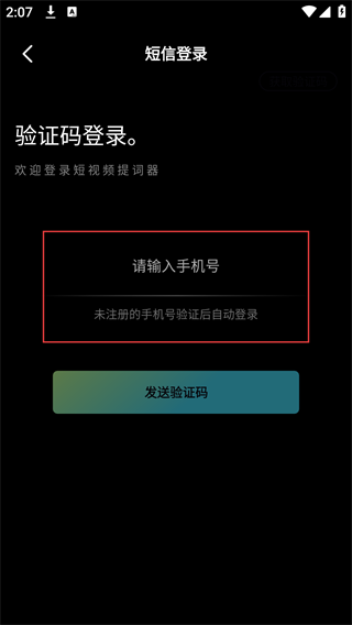 4、点击“发送验证码”,填写收到的短信验证码,完成账号登录,即可使用提词器功能。