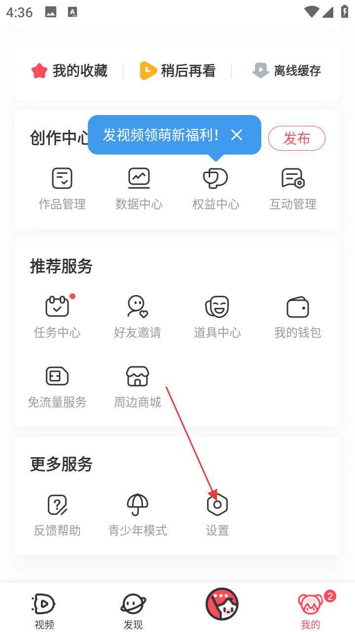 2、进入【我的】页面,若要进行软件设置,点击【设置】选项,进入设置界面。
