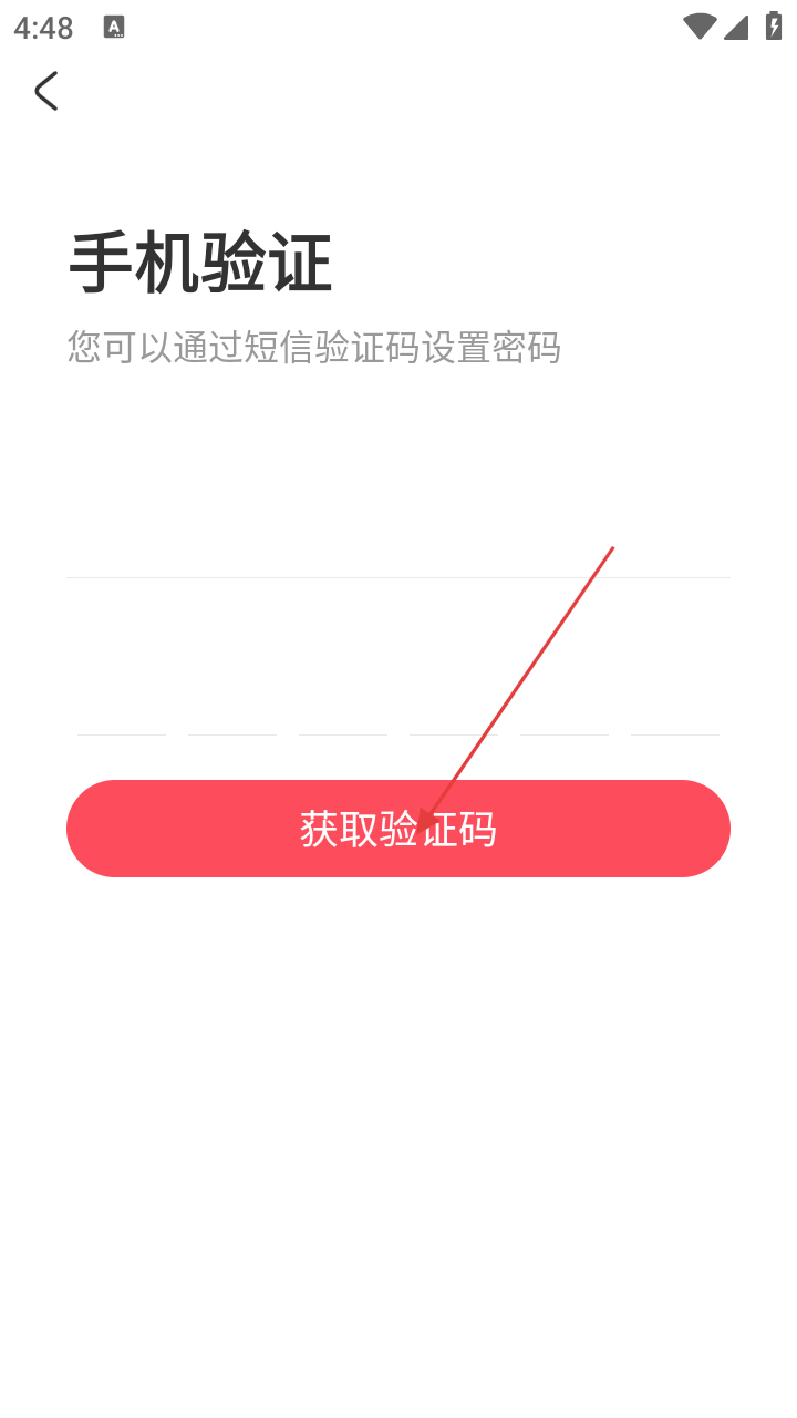4、在手机验证页面,点击【获取验证码】按钮,获取验证码后可进行密码设置操作。
