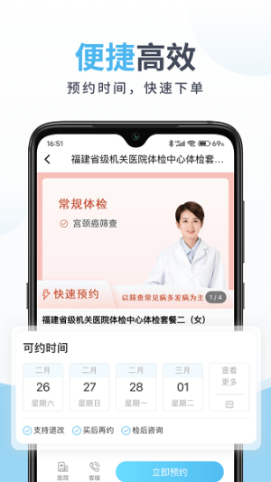 2、智能预约系统:采用先进的分时预约技术,精确到半小时的时间段选择,有效避开体检高峰人群。