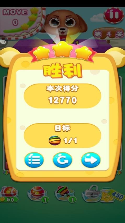 2、在游戏过程中,注意观察屏幕提示,合理规划每一步操作。通过消除糖果积累分数,完成关卡目标。