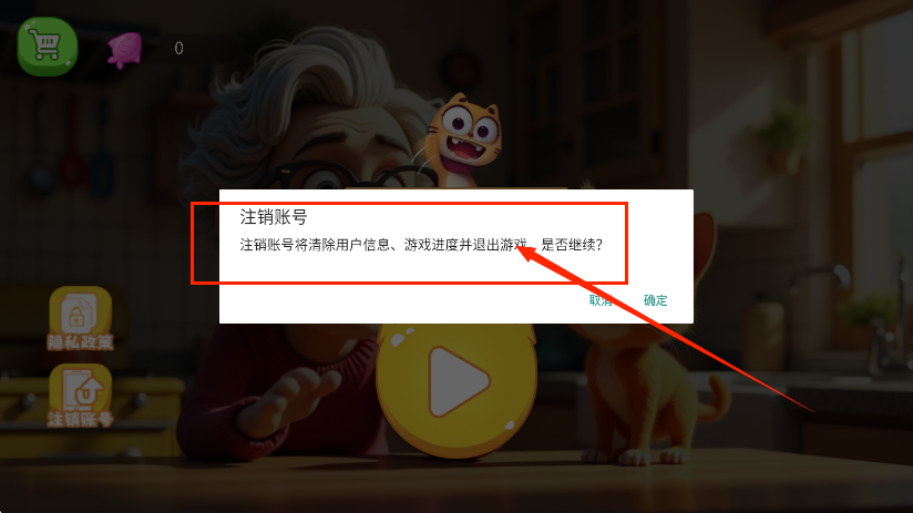 2、确认注销站账号的后果,注销账号会清楚游戏数据和游戏进度,确认是否继续。