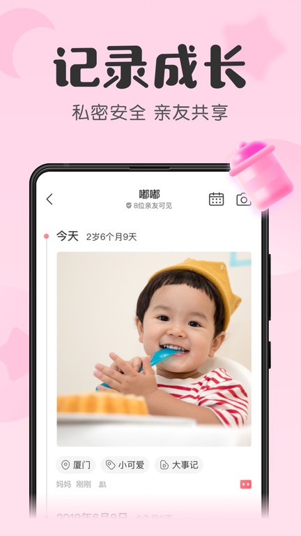 4、亲情共享空间设计,支持多位家人共同记录,构建专属的家庭育儿记忆库。