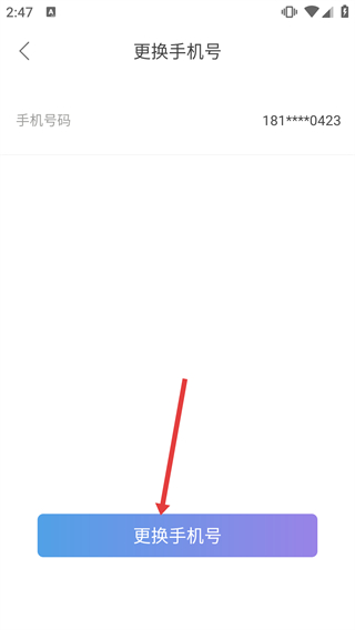 4、在更换手机号页面,点击“更换手机号”按钮,即可开展手机号更换的相关操作。