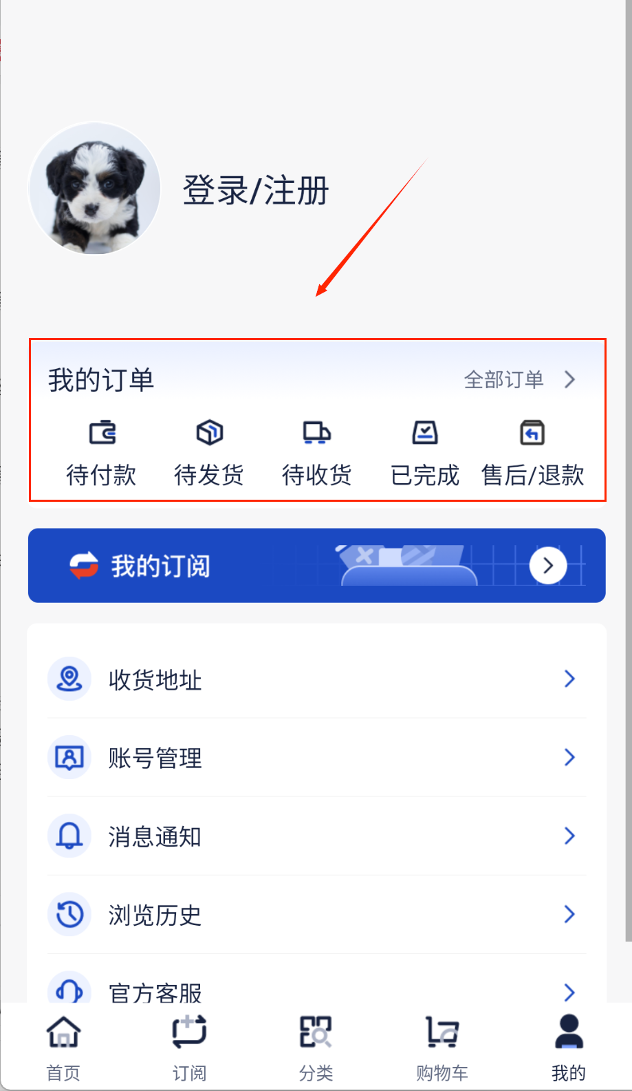 4、在订单中心追踪物流信息,收到商品后可申请七天无理由退换,使用积分兑换专区商品或分享购物体验获取优惠券。
