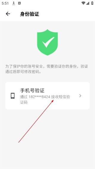 4、在【身份验证】页,点击“手机验证”选项,通过绑定的手机号获取验证码,完成身份验证后即可进入密码修改环节。
