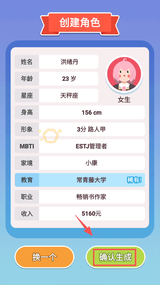 2、填写角色信息,包括姓名、年龄、星座等,点击“确认生成”完成角色创建。