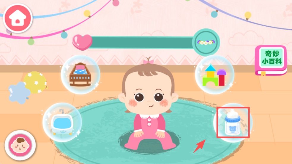 4、给妹妹喂奶,点击奶瓶图标进行喂养,确保妹妹健康成长。