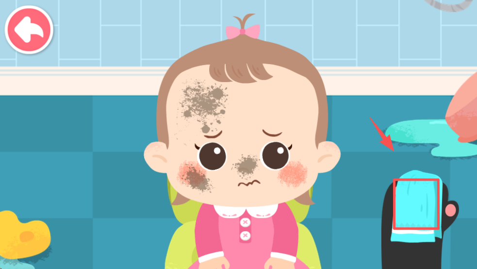3、根据提示给妹妹洗澡,点击相应图标进行操作,完成照顾任务。