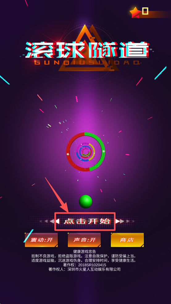 1、点击“点击开始”按钮进入游戏,开启你的滚球冒险之旅。