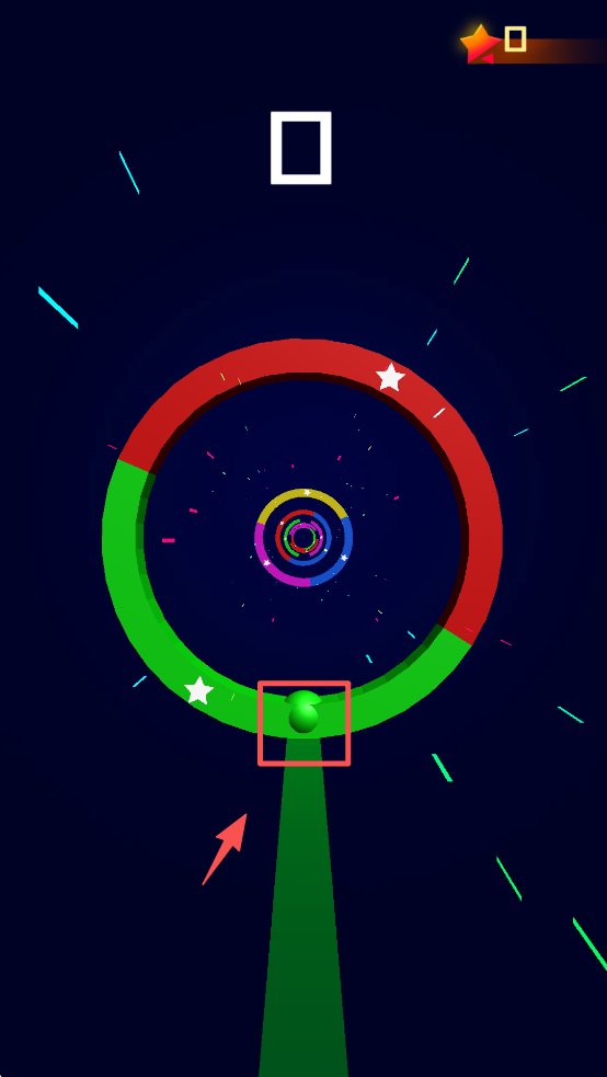 2、通过点击屏幕控制球体的移动,使其在隧道中滚动并避开障碍。