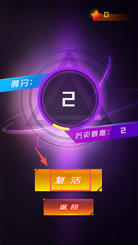 3、当球体未能进入正确轨道时游戏结束,点击“复活”继续游戏。