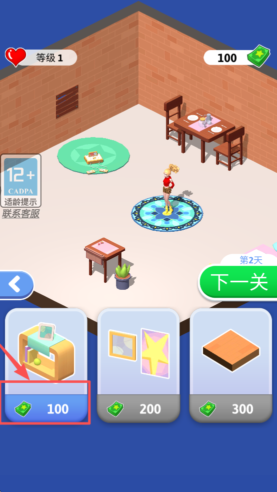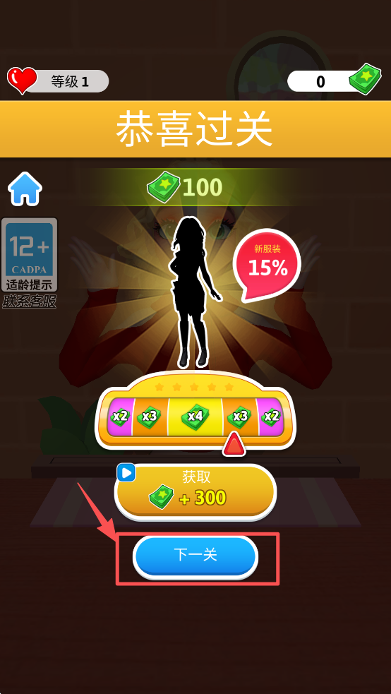 3、点击“下一关”按钮,领取奖励并进入下一关卡。