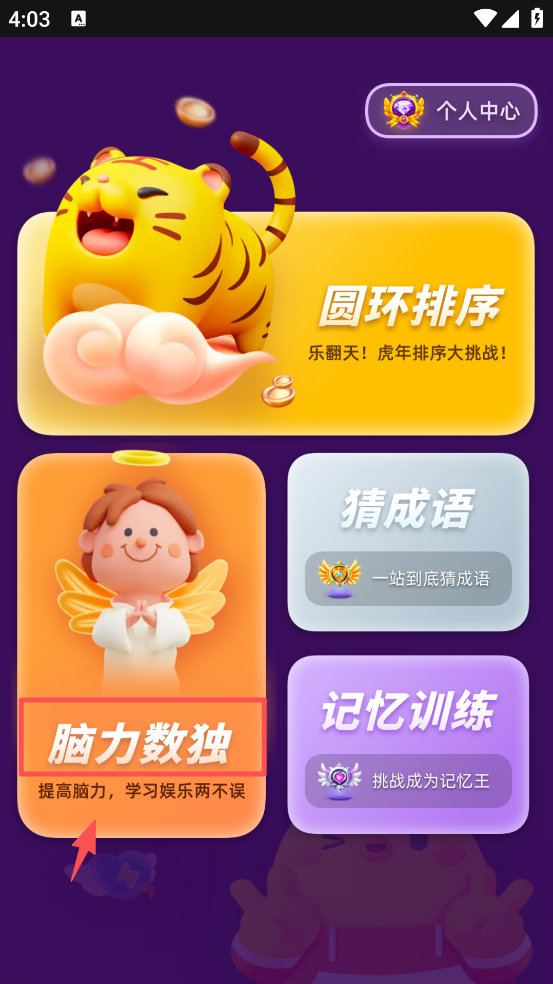 1、选择游戏模式,点击“脑力数独”图标进入游戏。