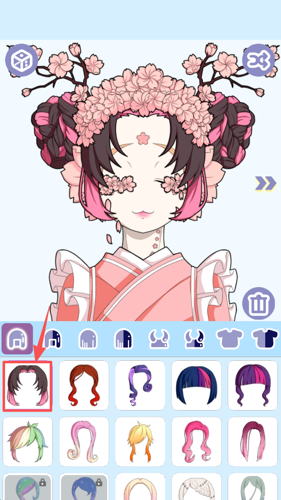 2、选择发型,点击屏幕下方的发型图标进行更换。
