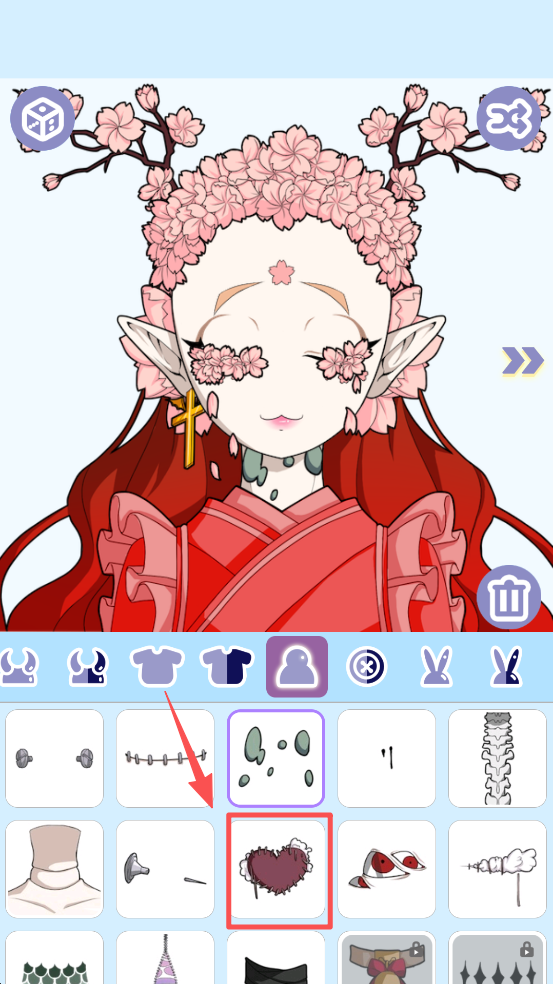 4、添加配饰,点击配饰图标为角色增加个性装饰。
