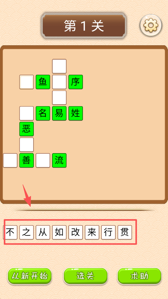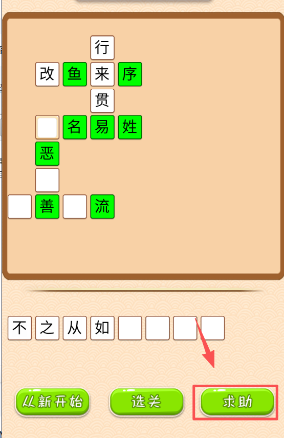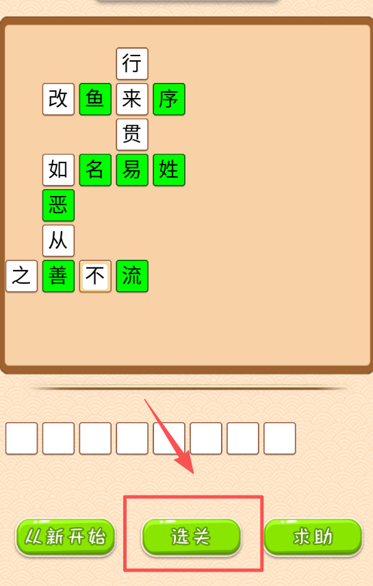 4、填完成语后,点击 “选关” 按钮,可选择其他关卡继续游戏。