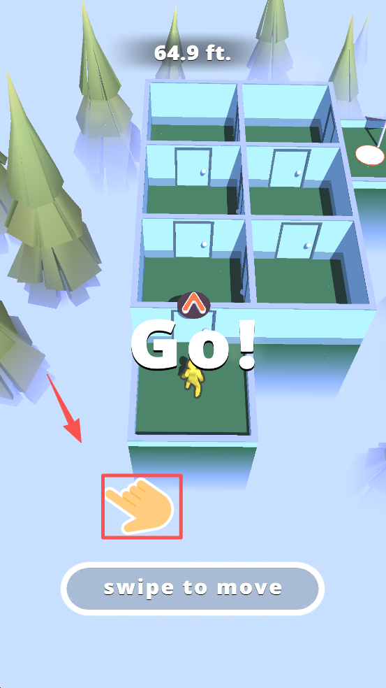 2、按照提示,滑动屏幕来控制黄色小人移动。