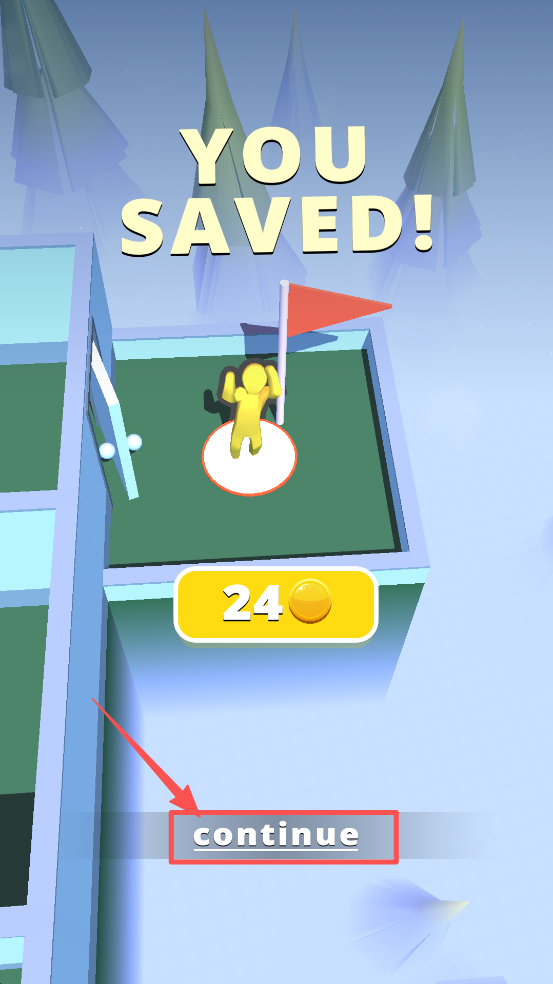 4、成功到达目标区域后,点击 “continue” 按钮,继续下一关。