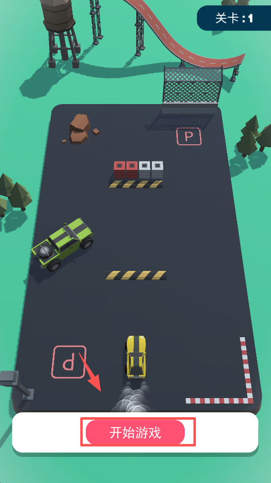 1、点击 “开始游戏” 按钮,进入关卡 1 的停车游戏。