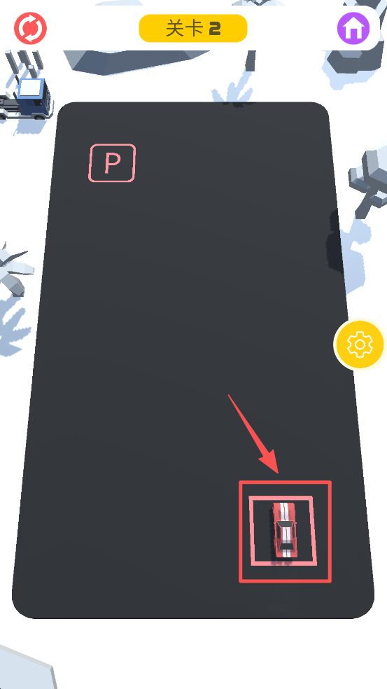 2、在关卡 1 中,将车停到标有 “P” 的停车位内。