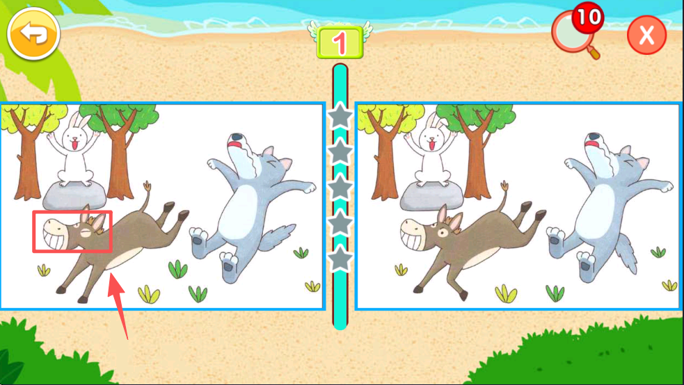 3、仔细观察两幅图,点击不同之处。每找到一个不同点,就能获得一颗星星。