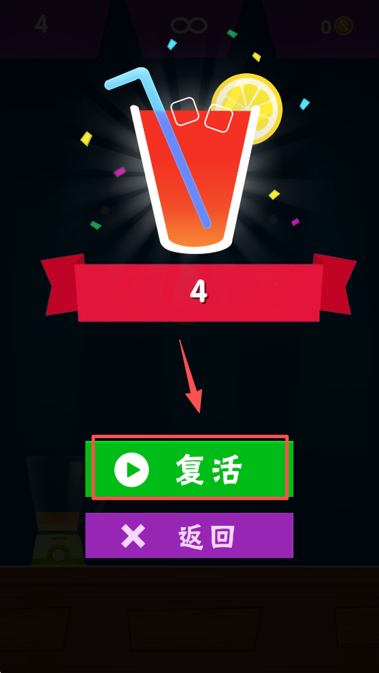 4、如果游戏结束,可以选择“复活”继续游戏。