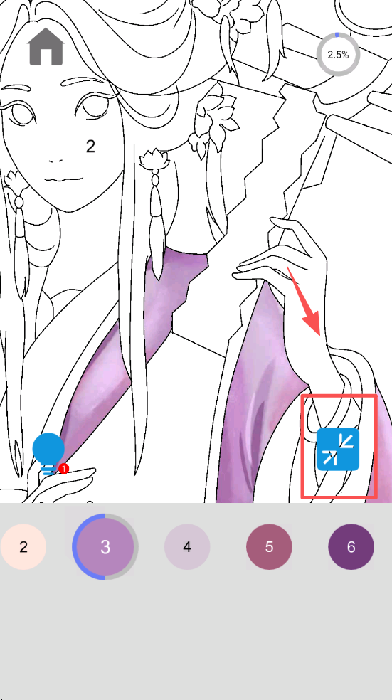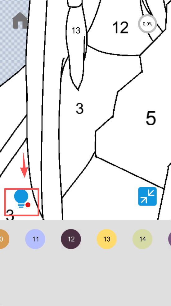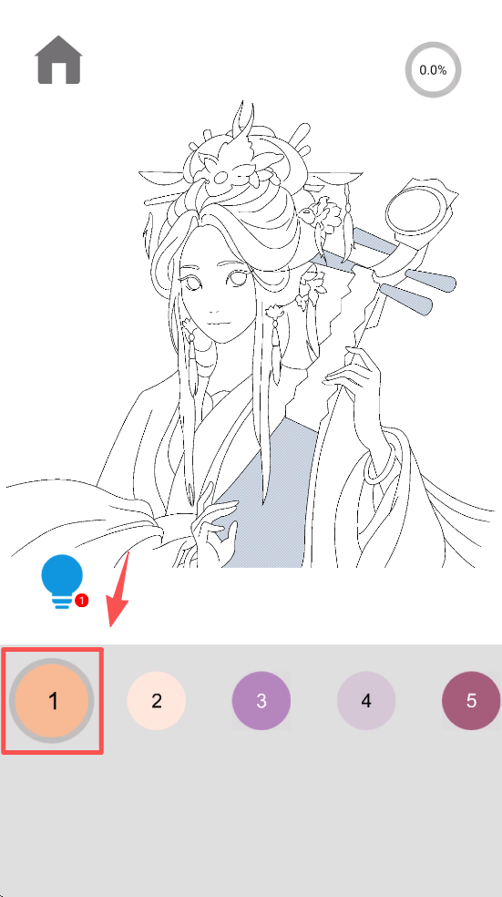 2、点击下方的数字1,选择您想要的颜色,开始上色。