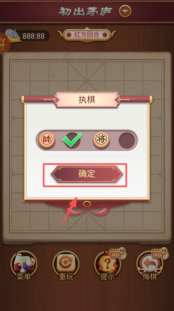 3、点击“确定”开始游戏。选择好模式后,点击确定进入棋局。